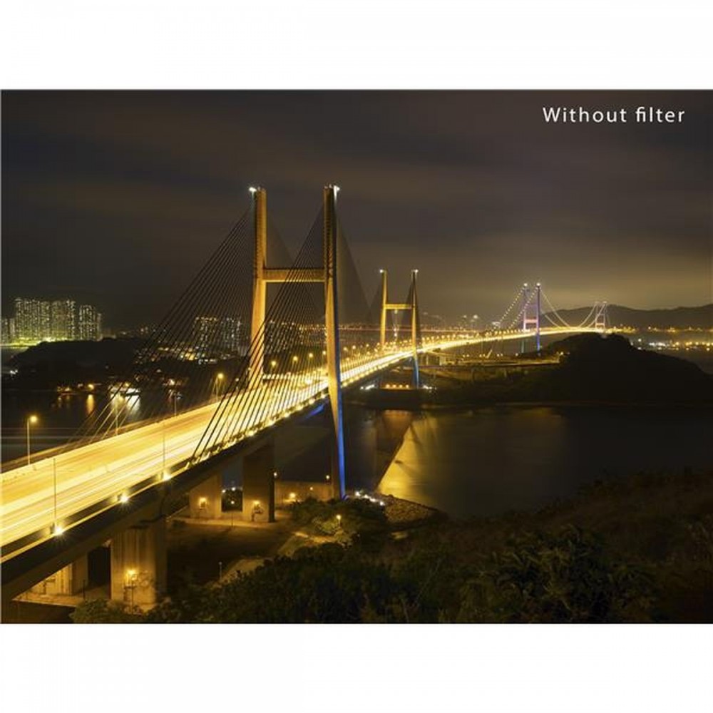 Een welbekend probleem onder astro- en nachtfotografen is lichtvervuiling. Dit ontstaat doordat kunstmatige lichtbronnen ’s-nachts vaak zorgen voor een gelige of oranje gloed in de beelden. Deze gloed vaagt uit, waardoor de foto onscherp of overbelicht lijkt. Om dit te voorkomen is er het H&Y nachtfilter. De gele/oranje gloed wordt optimaal gereduceerd, waardoor je skyline of sterrenhemel haarscherp en goed belicht in beeld komt!